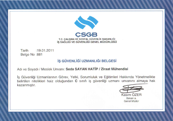Müdürlüğü tarafından onaylanmış ve İş Sağlığı ve Güvenliği